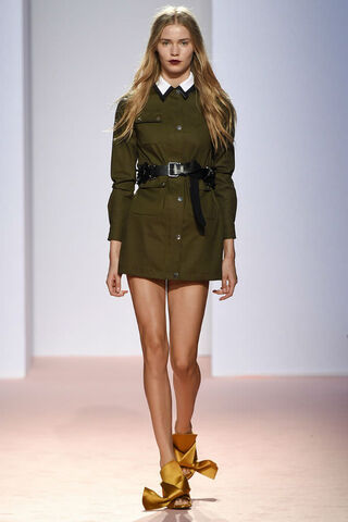 وأوضحت مجلة "إيلي" الألمانية أن الفستان العسكري يمتاز بلونه الكاكي المميز للملابس العسكرية، كما أنه يزدان بالجيوب الكبيرة المحاكة على الفستان من الخارج.