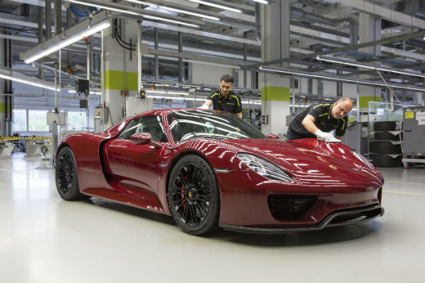 وقد تم تطوير السيارة 918 سبايدر كطراز رياضي فائق مزود بمنظومة دفع هجين؛ حيث تم طرحها في الأسواق لأول مرة في آواخر عام 2013 ضمن سلسلة موديلات بورشه الرياضية الخارقة. وتنطلق هذه الأيقونة الرياضية بقوة 887 حصاناً، وبالتالي اجتازت حلبة السباقات نوربورغرينغ في غضون 6 دقائق و57 ثانية، مع انخفاض معدل استهلاك البنزين ليصل إلى 3 لتر/100 كلم، وهو أقل من معدل استهلاك السيارات الصغيرة في دورة القيادة الأوروبية الجديدة.