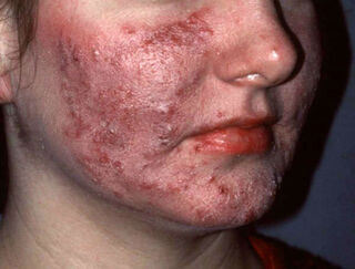 وأوضحت المجلة أن الوردية هي مرض جلدي تظهر أعراضه في صورة احمرار على الجبين والأنف والذقن بسبب تمدد أوعية دموية صغيرة. وبالإضافة إلى ذلك، غالباً ما تظهر على البشرة عُقد وبثور متقيحة.