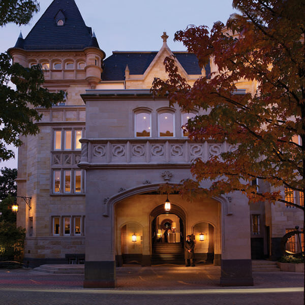 ويتميز «فيلا كينيدي» بموقعه المتميز قبالة الضفة الجنوبية لنهر "الماين" في منظر طبيعي أخاذ على جادة كينيدي. ويجمع الفندق على نحو رائع ما بين التقليد والحداثة، وقد تم بناء المباني الثلاثة المشيدة حديثاً للفندق حول "فيلا شباير" التاريخية 1904، وهو ما يزيد من بروز هذا الملاذ الفاخر وسط المدينة.