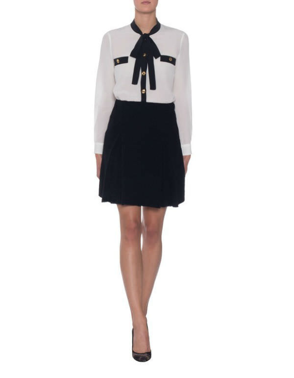وأضافت المجلة المعنية بشؤون الموضة والجمال أن الفيونكة السوداء، التي يتم لفها حول العنق، تتناغم مع بلوزة بيضاء؛ حيث تخلق هذه التوليفة تبايناً لونياً يخطف الأنظار.