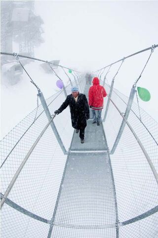 (د ب أ) - تشهد منطقة وسط سويسرا افتتاح أعلى جسر معلق في أوروبا في منتصف شهر كانون أول/ديسمبر2012. ويقع الجسر المعلق Titlis Cliff Walk على جبل تيتليس، الذي يبلغ ارتفاعه 3041 متراً، ويمتد هذا الجسر المعلق لمسافة 500 متر، ويمكن للسياح زيارته مجاناً.