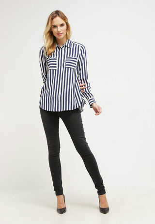 تقليمات الأزرق والأبيض تزين بلوزات الصيف