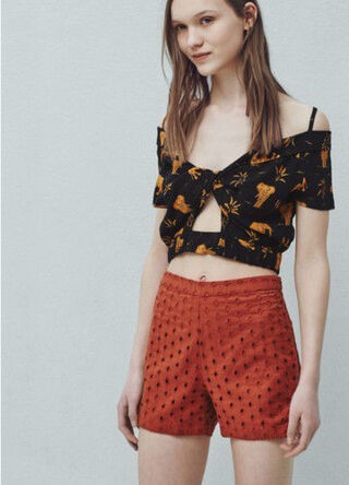 وأضافت المجلة المعنية بالموضة والجمال أن العقدة الأمامية تزين هذا الصيف البلوزات والفساتين والجمبسوت، مشيرة إلى إمكانية الحصول على إطلالة أكثر إثارة من خلال ربط العقدة بحيث تنشأ فتحة صغيرة أسفلها لتكشف البشرة، التي تتألق باللون البرونزي الجذاب.