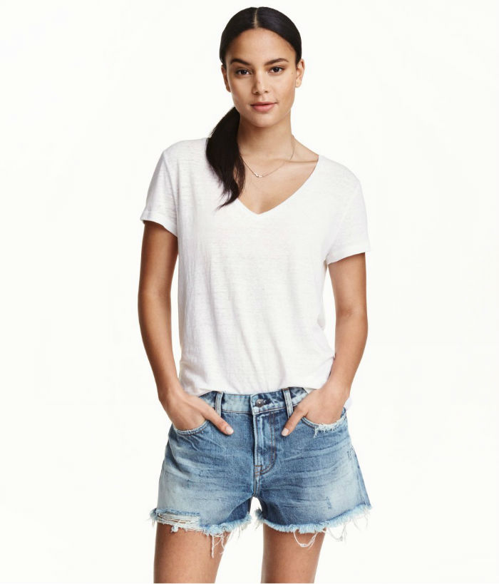 ويمكن تنسيق الشورت الجينز مع تيشيرت ذي تقليمات وصندل ذي أربطة وقبعة من القش.