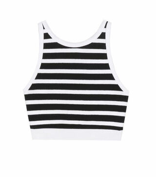 ويمكن أيضاً الحصول على إطلالة أنيقة من خلال تنسيق التوب القصير مع السروال، الذي يتخذ شكل التنورة.