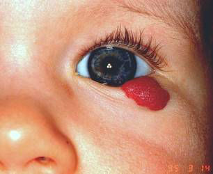 يُشار إلى أن الورم الوعائي الدموي يعد من الظواهر الشائعة نسبيا لدى الرضع؛ وهو عبارة عن نتوء ذي لون أحمر داكن ينشأ نتيجة للنمو الزائد للأوعية الدموية. وغالبا ما يزول الورم من تلقاء نفسه بعد بضع سنوات.