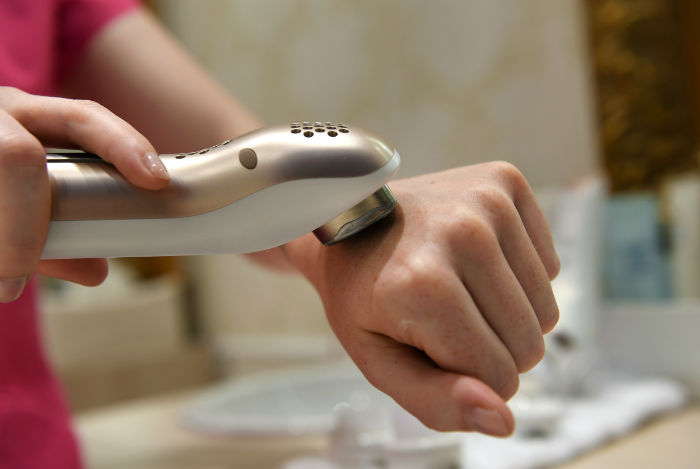 وفي الخطوة الثالثة يقوم الجهاز بتبريد البشرة، مما يساعد على تصغير حجم المسام مجددا والحد من التورمات.