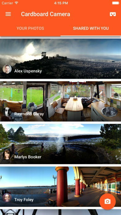 ويتيح تطبيق الصور Cardboard Camera للمستخدم إمكانية التقاط الصور بتقنية ثلاثية الأبعاد وبصيغة 360 درجة؛ حيث تبدو الأشياء البعيدة على مسافة بعيدة أيضا عند مشاهدة الصور.