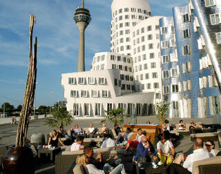 لم يسهم موقع مدينة دوسلدورف على نهر الراين في منحها جمالاً طبيعياً فقط، بل أثر أيضاً على مشاريع وأعمال الهندسة المعمارية فيها. فهذا النهر، الذي يعتبر الأكبر في ألمانيا، يعمل منذ مئات السنين على إكساب مدينة دوسلدورف المزيد من الأهمية. وبذلك نشأت الكثير من المباني ذات التصميم المتفرد بالقرب من نهر الراين. وينطبق هذا بشكل خاص على (مرفأ الإعلام)، الذي عايش تحولاً دراماتيكياً حدث بصورة مذهلة، فحيثما كانت الصوامع والمخازن تميز صورة المدينة فيما مضى، أصبحت توجد الآن مبان شاهقة وأبراج قام ببنائها مهندسون معماريون مشهورون على مستوى العالم، بحيث لم تعد هذه المباني الحديثة تذهل زوار المدينة فحسب، بل والخبراء الدوليين في مجال العمارة أيضاً.