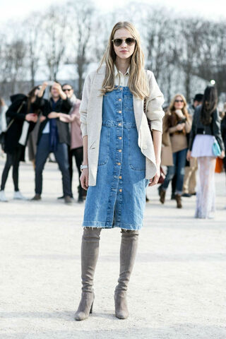 وأكدت "فرويندين" أن بوت فوق الركبة يتناغم بصفة خاصة مع التنانير والفساتين ذات قصّة على شكل حرف A، ولا سيما الموديلات الجينز ذات صف الأزرار الأمامي. كما يجوز أن يختبئ ساق البوت أسفل طرف التنورة؛ حيث يمنح ذلك المرأة مظهرا أكثر نضجا.