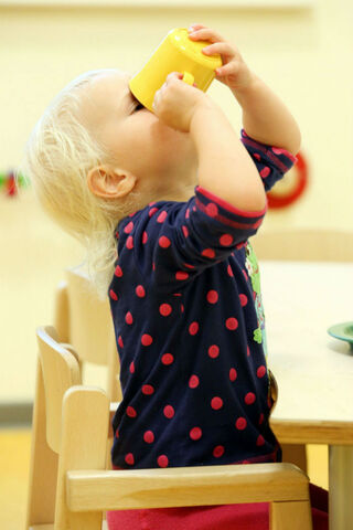 كما يمكن للوالدين تشجيع الأطفال الصغار على تناول السوائل بتقديمها لهم في أكواب ملونة مثلا أو تخصيص زجاجة ذات شكل جذاب لهم.