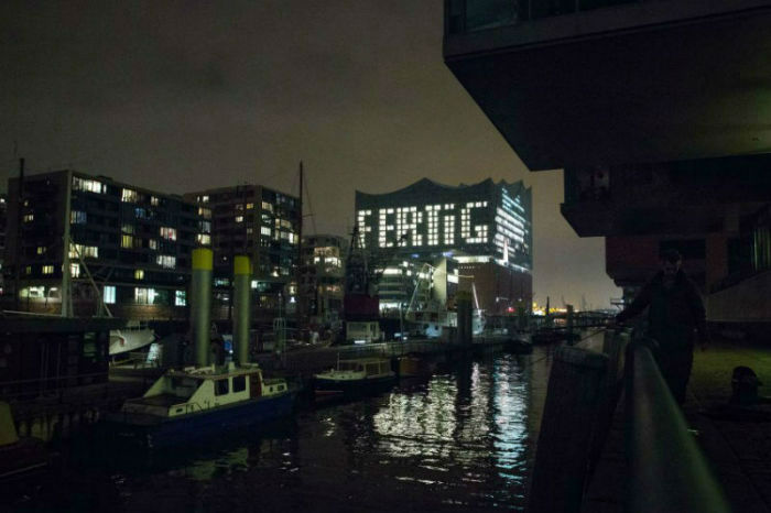 هذه النهاية السعيدة توجت بكلمة (FERTIG) بالخط العريض، وهي تعني بالعربية "جاهز" أي أن البناء انتهى، حيث زينت هذه الكلمة الواجهة الزجاجية لمبنى "إلبفيلهارموني" في ميناء هامبورغ مؤخراً.