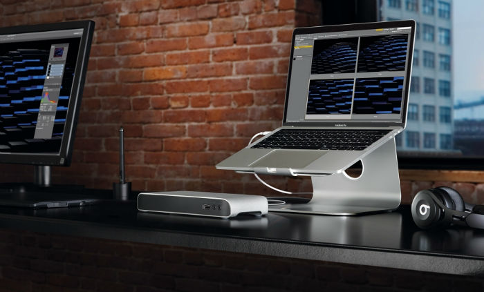 وعن طريق كابل Thunderbolt - 3 وحيد بتصميم USB من النوع C يتوفر لأجهزة أبل ماك بوك والحواسب المكتبية المزودة بنظام مايكروسوفت ويندوز الكثير من منافذ التوصيل المهمة عبر قاعدة الإرساء.