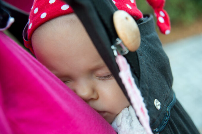 ولتجنب السخونة المفرطة، ينبغي ألا يرتدي الرضيع ملابس ثقيلة للغاية، مع مراعاة أن يصل هواء كاف إليه من أعلى ومن الجانب، وهذا يعني فتح الجاكت من أعلى وإبعاد غطاء الرأي الخاص بالحمّالة.