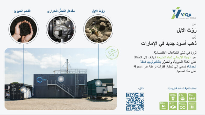 أعلنت شركة فيكا للاستثمار الألمانية عن التعاون مع مصنع الامارات لإنتاج حليب الإبل ومشتقاته (Camelicious)، للبدء في انتاج الفحم الحيوي الصناعي باستخدام مخلفات الإبل. وترتكز هذه الشراكة الاستراتيجية على رؤية مشتركة لتسخير الإمكانات الكامنة في مخلفات الإبل " الروث"، وذلك باستخدام أحدث تكنولوجيا تحويل الفحم الحيوي، حيث تهدف إلى تجديد المناظر الطبيعية الصحراوية القاحلة، وتحويلها إلى أراضٍ خصبة وصالحة للزراعة لتعزيز الأمن الغذائي، وتشجيع الزراعة. وعبر استخدام أحدث التقنيات الألمانية المعترف بها عالميًا، فقد تم مؤخرًا إدخال هذه التكنولوجيا الحديثة بنجاح في مصنع الإمارات لإنتاج حليب الإبل ومشتقاته (كاميليشوس) مما يمثل علامة فارقة في تنفيذ المشروع. وبحسب شركة فيكا للإستثمار الألمانية، فإن الفحم الحيوي الناتج يشبه "التربة المعجزة"، ويتمتع هذا الفحم الحيوي بقدرة رائعة على تحويل الصحارى الرملية إلى أراضٍ صالحة للزراعة وخصبة بشكل دائم. وبالتالي فإن استخدام مواد النفايات العضوية، مثل تلك الناتجة عن المراكز الحضرية الكبيرة، يمكن أن يلعب دورًا محوريًا في تخضير وتشجير المناظر الطبيعية الصحراوية القاحلة. ويملك هذا الفحم الحيوي قدرة فريدة على الاحتفاظ بالمياه، مما يسهم بشكل كبير في جهود الحفاظ على المياه، ويلعب هذا الابتكار دورًا حيويًا في تقليل انبعاثات الغازات الدفينة، مما يؤدي إلى فوائد بيئية متعددة.وقال آدم فيكا، رئيس شركة فيكا للاستثمار الألمانية:
