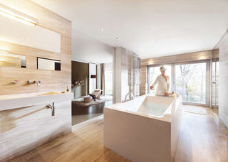 وقدمت الشركة الألمانية تصميماً لحمّام يجسد مفهوم غرفة المعيشة بكل ما تحمله الكلمة من معان؛ حيث يشتمل الحمّام على أريكة حائطية ومقعد وثير للاسترخاء وسجادة أنيقة، في حين يقع حوض الاستحمام (البانيو) في منتصف الحمّام.