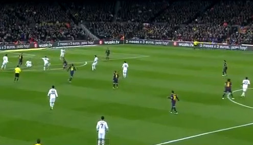 ووسط الاندفاع الهجومي لبرشلونة ، شتت سامي خضيرة نجم الريال الكرة من حدود منطقة الجزاء لتصل الكرة إلى الأرجنتيني آنخل دي ماريا الذي انطلق بها في حراسة بويول واخترق منطقة الجزاء ثم راوغ بويول وسدد الكرة قبل وصول ألفيش إليه وتصدى بينتو للتسديدة ولكنها ارتدت إلى رونالدو المتحفز داخل المنطقة ليسددها بيسراه إلى داخل المرمى قبل أن يستعيد بينتو وضعه رغم محاولته الرائعة للتصدي للكرة التي مرت بين يده وقدم بيكيه.