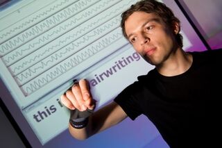 (د ب أ) -يلجأ المستخدم إلى الكتابة على لوحة المفاتيح الصغيرة أو الافتراضية كأحد الحلول الاضطرارية أثناء التنقل والتجول. ولكن الباحثون بمعهد كارلسروهه للتكنولوجيا (KIT) يطرحون تساؤلاً؛ لماذا لا يتمكن المستخدم من كتابة رسائله النصية في الهواء؟. وتحقيقاً لهذا الهدف قام العلماء الألمان بتطوير قفاز مُزود بمستشعر يقوم بتسجيل حركات الأيدي وينقلها لاسلكياً إلى برنامج التعرف على الحركة بالجهاز المعني، لتظهر النصوص بعد ذلك على شاشته.