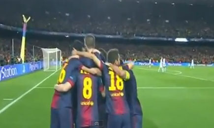 وارتدت الهجمة لصالح برشلونة ومرر إنييستا الكرة بإتقان شديد إلى ميسي بعدما استخلصها من لاعبي ميلان ببراعة وهيأ الأخير الكرة لنفسه وسددها في حراسة فيليب ميكسيه مدافع ميلان إلى داخل المرمى على يسار الحارس الذي حاول التصدي لها دون جدوى.
