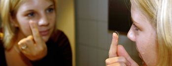 وتناسب العدسات الكبيرة والتباينات اللونية القوية مع الوجوه ذات الحواف التي تتخذ شكل المستطيل؛ لأنها تكسر طول الوجه. أما الوجوه ذات الحواف التي تتخذ شكل المربع القصير، فتناسبها العدسات الصغيرة والقليل من التباين اللوني.