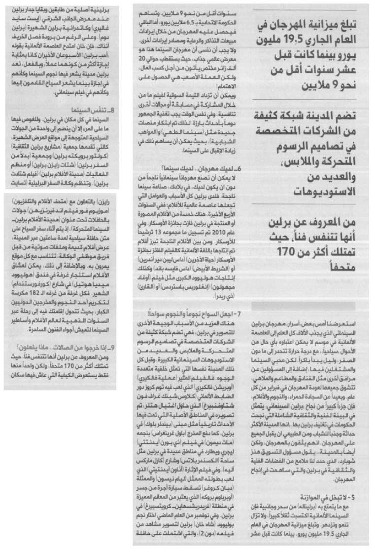 10 وصفات لصناعة مهرجان يملأ الدنيا ويشغل الناس 10 وصفات لصناعة مهرجان يملأ الدنيا ويشغل الناس تحميل الملف (PDF) تناولت صحيفة (البيان) في عددها الصادر يوم 16 فبراير 2011 مهرجان برلين السينمائي (برليناله) كمعرض عالمي جذب يشجع على الإقبال على السينما، وأهمية برلين كوجهة مثالية لصناعة السينما وتصوير الأفلام العالمية واهتمامها بالفنون. اقرأ أيضاً برلين.. عاصمة شباب العالم برلين صديقة العائلة والأطفال 48 ساعة فقط طلبك دائماً موجود السياحة في برلين: طلبك دائماً موجود برلين مدينة أسطورية تحمل عنوان السياحة والفنون والاسترخاء جزيرة المتاحف في برلين فرادة العمارة والمقتنيات الأثرية نجوم ومشاهير تجري في عروقهم الدماء الألمانية المدن الألمانية أماكن سياحية خدمات ينصح بها تفاعل معنا آخر الأخبار “ACT” شركة تعلن عن أول عملية بيع لجناح الجراحة الروبوتية للعمود الفقري" في الكويت "نُسُك" تسعى لأتمتة إجراءات مناسك الحج والعمرة انجاز هام بالتعاون بين الامارات لإنتاج حليب الإبل وفيكا للاستثمار الألمانية فينترسال دِيا الألمانية تأمل في الاستثمار وتطوير المشاريع في منطقة الشرق الأوسط وشمال إفريقيا فينترسال دِيا الألمانية تأمل في الاستثمار وتطوير المشاريع في منطقة الشرق الأوسط وشمال إفريقيا فينترسال دِيا تبدأ بأولى عمليات تخزين للكربون في بحر الشمال الدنماركي كجزء من مشروع «غرين ساند» عرض كافة الموضوعات