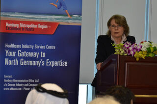 كما أوضحت أن المركز يساهم في التعريف بتميز الخدمات الطبية والعلاجية في هامبورغ ومنطقة شمال ألمانيا وتقديم معلومات وافية للمرضى في منطقة الخليج الراغبين في التوجه لتلقي العلاج فيها. لافتةً إلى ترسخ مكانته تدريجياً كحلقة وصل حيوية بين منطقة شمال ألمانيا ومنطقة الخليج يسهم في توسيع مجال العلاقات الصحية التاريخية بين المنطقتين.