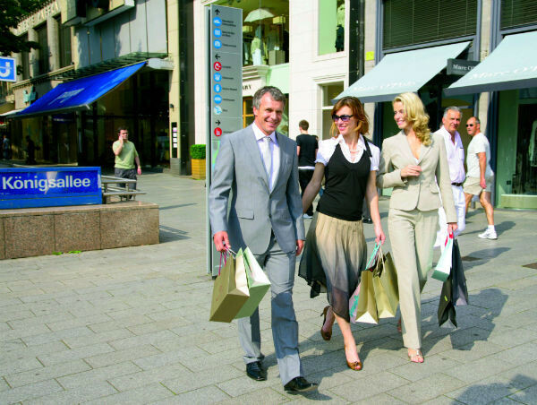 وبالفعل، فإن شهرتها كعاصمة للموضة العالمية ومركزاً لأحدث تصاميم الأزياء يتجاوز الحدود المحلية، خصوصاً أنها تمثل موطناً لمعرض الموضةIGEDO) ) ولعدد لا يحصى من صالات عرض أبرز المصممين العالميين. ولذلك لا عجب في اجتذابها لعدد كبير من السياح العاشقين للتسوق، من بينهم العديد من الزوار القادمين من منطقة دول مجلس التعاون الخليجي. ومن أشهر وجهات التسوق في عاصمة الراين يبرز شارع الملك (كونيغسآليه) المشهور عالمياً بفخامته ورقي المتاجر المنتشرة فيه. فعندما يسأل المرء أحد زوار المعارض أو رجال الأعمال المسافرين، عما ينبغي للمرء بلا شك رؤيته أو القيام به أثناء إقامة قصيرة في دوسلدورف، فإن أول ما تسمعه غالباً: التسوق في شارع الملك (كونيغسآليه).