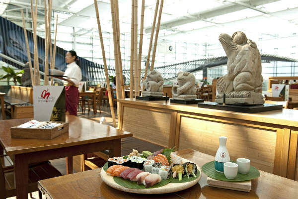 وضمن صالة إجراءت الدخول الصاخبة هناك مكان خاص جداً يرحب بالضيوف من خلال طوابقه المكونة من خشب الساج الأصلي والفن الآسيوي المميز، ويتمثل ذلك في مطعم (مانفوستين)، الذي يتواجد في منطقة عامة من مبنى الركاب 2، ويعد واحداً من أكثر المطاعم التي تلقى إقبالاً بعد المطاعم الآسيوية. ويقدم المطعم الأطباق التايلاندية والسوشي. وهناك مطعم آسيوي آخر يقع في مبنى الركاب 1 ويتميز بسمعة كبيرة وهو مطعم (بامي)، الذي يتميز بأطباق السوشي الطازجة التي يقوم بإعدادها كبير الطهاة. ويتم إعداد جميع الأطباق في المطبخ المكشوف باستخدام وصفات تايلاندية أصلية.
