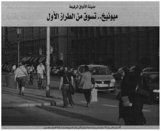 ركزت صحيفة الشرق الأوسط في عددها الصادر يوم 18 أغسطس 2010 على جاذبية ميونخ كمدينة تسوق عالمية تلبي كافة الأذواق الرفيعة لعشاق التسوق. كما تطرقت إلى الحفاوة الكبيرة التي يحظى بها زوار المدينة القادمين من منطقة دول مجلس التعاون الخليجي.