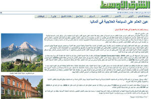 في عددها الصادر يوم 22 فبراير 2012 تناولت صحيفة الشرق الأوسط السياحة العلاجية في ألمانيا وسلطت الضوء على ما يتميز به هذا المقصد الطبي العريق من بنية تحتية متطورة وتكنولوجيا حديثة وخبرة طبية طويلة ورعاية شاملة للمرضى الدوليين، وكذلك الحملات الترويجية التي تقوم بها ألمانيا في دول مجلس التعاون الخليجي.