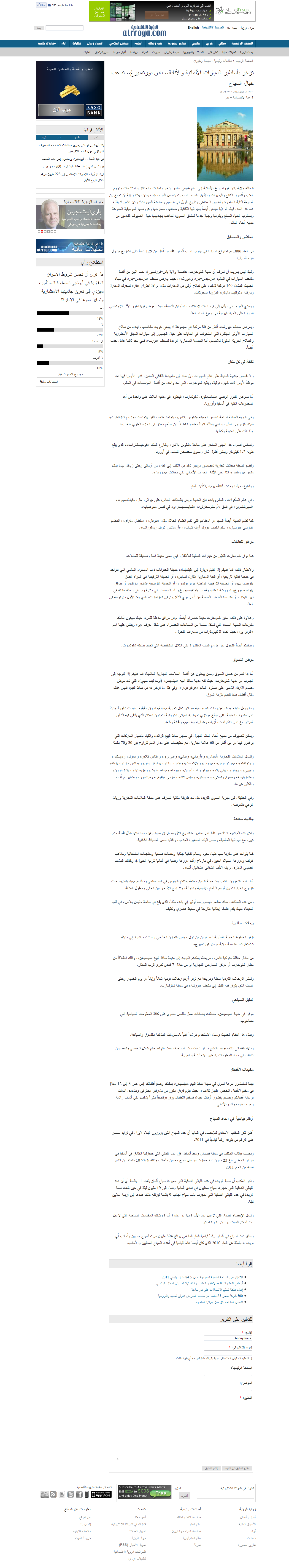 تناولت صحيفة "الرؤية الاقتصادية" الإماراتية ولاية بادن-فورتمبيرغ في عددها الصادر في شهر أبريل 2012، حيث توقفت عن مدينة شتوتغارت، عاصمة الولاية، وسلطت الضوء على أهم معالمها السياحية.