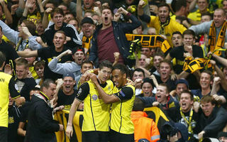 وأسفر ضغط دورتموند عن هدف التقدم في الدقيقة 16 عندما خطف ماركو ريوس الكرة من دفاع أرسنال خارج حدود منطقة الجزاء مباشرة وتهيأت أمام روبرت ليفاندوفسكي الذي مررها قصيرة إلى ميختاريان الذي سددها قوية في مرمى المدفعجية.