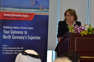 وبعد حفل الافتتاح الذي أُقيم في دبي، جرى الاحتفال بـ (مركز الخدمات لقطاع الرعاية الصحية) في بلدية هامبورغ، حيث استضافت الحفل سعادة كورنيليا بروفر- ستوركس مع حضور أكثر من 80 عضواً من أعضاء القطاع الصحي في شمال ألمانيا. وأبدى ممثلون من غرفة تجارة هامبورغ وكذلك من (نورغينتا) دعمهم للحدث الناجح من خلال مشاركتهم.