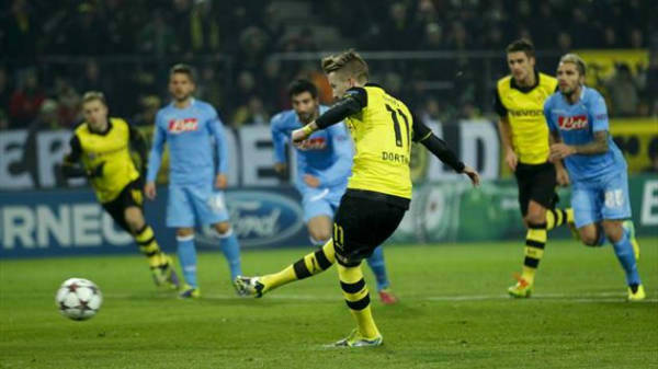 وسدد ماركو ريوس ضربة الجزاء بمهارة فائقة على يسار الحارس ليكون هدف التقدم لدورتموند في الدقيقة العاشرة وهو الهدف الثاني لريوس في المباريات الخمس التي خاضها بهذه المجموعة في دوري الأبطال.