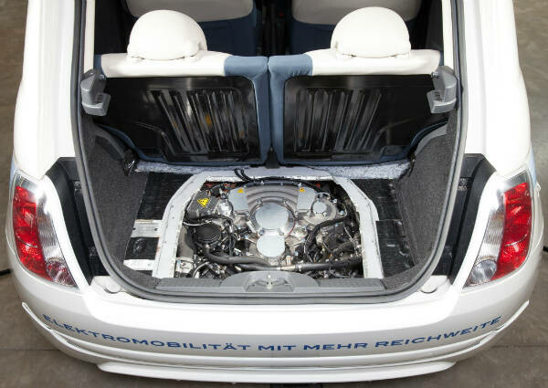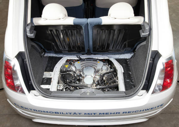 ويتمتع محرك البنزين بسعة حجمية 8ر0 لتر ويمتاز بهدوء وسلاسة الدوران بشكل لا يؤثر على الطابع المميز للسيارات الكهربائية. وبالإضافة إلى ذلك لا يتعدى وزن المحرك، الذي يولد قوة 30 كيلووات/41 حصان، حوالي 62 كيلوغراماً.