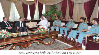 ووقع سمو نائب رئيس مجلس الوزراء وزير الداخلية مع وزير الداخلية في مقاطعة ساكسونيا الألمانية في استراحة الضباط في مقر القيادة العامة لشرطة أبوظبي إعلان تعاون مشترك بين وزارة الداخلية في دولة الإمارات العربية المتحدة ووزارة الداخلية في مقاطعة ساكسونيا في جمهورية ألمانيا الاتحادية يركز على تعميق التعاون في المجالات الشرطية خصوصاً تبادل المعلومات والخبرات ومجالات التعليم والتدريب والزيارات والدعم المتبادل والمعلومات الشرطية وفقاً للقوانين والتشريعات الداخلية في البلدين.