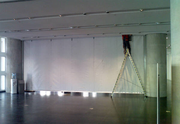 بالنسبة للستائر غير المرئية التي تحمي من الحريق، فإن المرء لا يراها، لأنها تعتبر جزءاً من الهندسة المعمارية وتكون مخفية خلف الجدران أو في الأسقف. في حالة نشوب حريق تعمل الستائر بشكل تلقائي وتسد اللهب والدخان عن السلالم (1)، وتحافط على طرق الهرب خالية من الدخان (2) أو تقسم غرف كبيرة إلى عدة مناطق فردية للحماية (3).