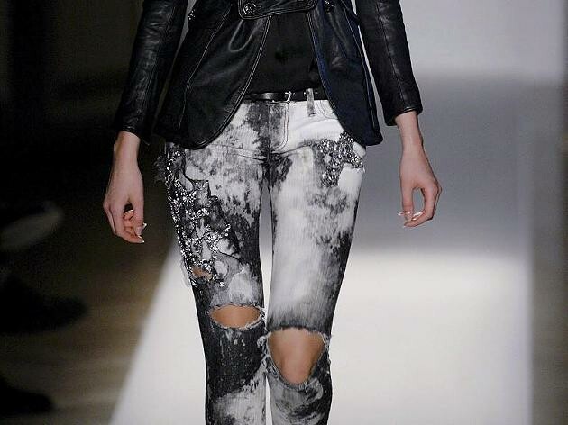 وأوضحت المجلة المعنية بشؤون الموضة أن الثقوب والمواضع المتنسلة تمثل ملامح المظهر الرث للسروال الجينز الملتصق بالجسم، مشيرة إلى أن هذا السروال يمتاز بطابع كاجوال للغاية ويمنح المرأة إطلالة جريئة مفعمة بالإثارة.