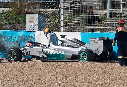 وخرج هاميلتون سليما من الحادث ولكن التصادم وضع نهاية مبكرة لتجارب فريق مرسيدس، حيث أعلن الفريق الألماني أن السيارة فقدت جناحها الجانبي في المنعطف الأول لمضمار خيريث كما تضررت مكابح السيارة أيضا.