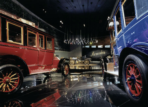 للتعرف على بدايات صناعة السيارات، فما على المرء سوى التوجه إلى الطابق العلوي من متحف "مرسيدس-بنز". فانطلاقاً من هناك يبدأ الزوار طريقهم عبر تاريخ السيارات على جولتين في 9 مستويات، بدءاً من عام 1886 وحتى وقتنا الحاضر. ويعتبر المتحف الوحيد في العالم الذي يعرض 127 سنة من تاريخ السيارات دون فجوات. لقد صمم المبنى على غرار دوامة الحمض النووي بشكلها الحلزوني المزدوج. يوجد في داخله 160 مركبة وأكثر من 1500 معروض على مساحة 16500 متر مربع.