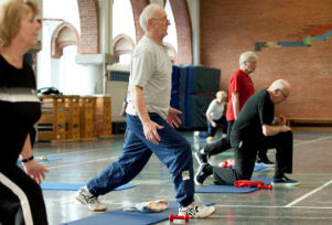 وبعد ذلك يتم ممارسة بعض تمارين تقوية العضلات البسيطة بأثقال الدمبل أو بوزن الجسم ذاته. وأوضح ليشلر قائلاً: "لابد هنا من تدريب المجموعات العضلية المهمة لتأدية المهام اليومية كالتي يتم استخدامها عند النهوض مثلاً أو فتح زجاجة أو تمشيط الشعر"، على أن يتم اختتام ذلك بأحد تمارين الاسترخاء على أنغام الموسيقى.