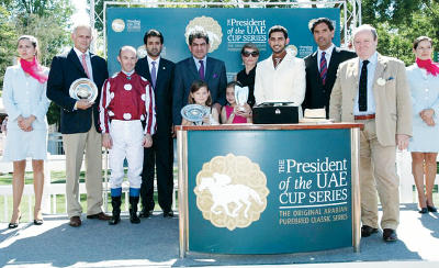 اختتمت أمس (21 أكتوبر 2012) منافسات الجولة السادسة لـ " جائزة صاحب السمو رئيس الدولة للخيول العربية الأصيلة " لمسافة ميل وربع الميل التي أقيمت في مضمار " ايفزهايم " في مدينة بادن-بادن في ألمانيا.