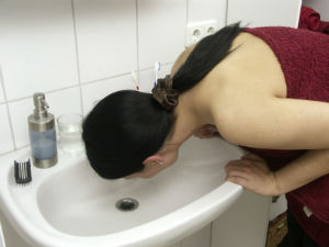 ومن ناحية أخرى، أشارت اختصاصي العلاج الطبيعي الألمانية أورسولا هيلبرت موليغ إلى أن الوخز بالإبر يساعد في التخلص من التوتر النفسي الذي يحفز الشعور بالغثيان، مع إمكانية الخضوع أيضاً للعلاج بالروائح العطرية؛ حيث يعمل استنشاق الزيوت الطيّارة الموجودة في بعض النباتات، كالبرغموت والنعناع الفلفلي والمندرين، على التخلص من الشعور بالغثيان.