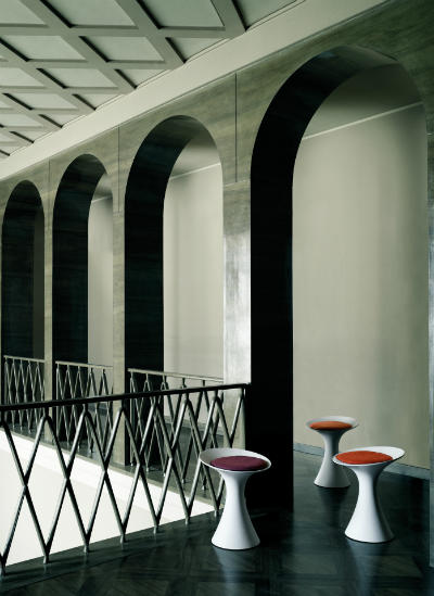 وقد قام المصمم الإيطالي ماريو فيرراريني بمزج الأشكال المطورة لتصاميم حقبة الخمسينيات مع تصميمه «Kalè» لشركة Living Divani. ويمكن استخدام قطعة الأثاث هذه كمنضدة جانبية أو يمكن وضع بعض الوسادات الملونة عليها واستعمالها كمقعد بلا ظهر أو ذراعين. وإلى جانب الشكل المنحني برفق، فإن هذا التصميم يمتاز بالاعتماد على الخامات الجديدة، من أجل توسيع إمكانيات التشكيل والتصميم.