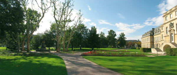 وإلى اليوم، لا تزال حدائق القصر، التي أنشأها الملك فريدريش الأول في عام 1807، تمثل واحداً من أبرز الأماكن في وسط مدينة شتوتغارت، حيث يمكن مشاهدة أفضل تصميم حديقة في الأقسام الأربعة التي تتكوّن من حدائق القصر العليا والوسطى والسفلى "شلوس غارتن" وحديقة الأكاديمية "أكاديمي غارتن" (موقع الأكاديمية العسكرية السابقة). يمتد هذا الحزام الأخضر الخلاب من القصر الجديد في قلب المدينة إلى نهر النيكار في منطقة "باد كانشتات" ويستمر عبر حديقة "روزنشتاين". وتقع حدائق القصر العليا والوسطى، التي تم إعادة تصميمها في عام 1951، على مرمى حجر من محطة القطارات الرئيسية وشارع الملك "كونيغس شتراسه" وتمثل مكاناً يدعوك للتنزه بأريحية، مع أشجارها القديمة ومساحات كبيرة من العشب وبحيرات ونوافير مزخرفة.