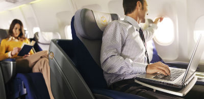 لوفتهانزا: قامت شركة الطيران الألمانية بتجهيز 66 من طائراتها العاملة على الخطوط الجوية الطويلة بنظام لوفتهانزا FlyNet. وبالتالي تروج الشركة لنفسها بامتلاكها أكبر أسطول في العالم من طائرات المسافات البعيدة والمزودة بخدمة الإنترنت.