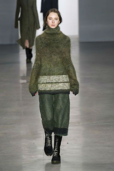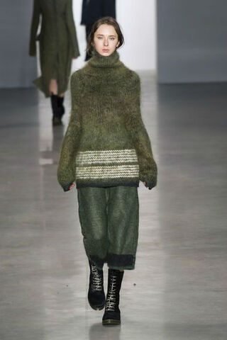 (د ب أ)- يغزو اللون الأخضر الداكن الذي يحاكي الملابس العسكرية المموهة عالم الموضة النسائية في خريف/شتاء 2014