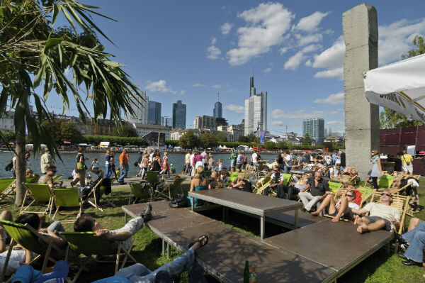 كما يحب سكان فرانكفورت التجمع على ضفاف نهرهم، الذي يمثل مكاناً شعبياً للالتقاء يضم متاحف رائعة وحدائق غنّاء وأحزمة خضراء جميلة. وفي كل عام، خلال الصيف، تستضيف متاحف فرانكفورت ونهر الماين واحداً من أشهر المهرجانات الثقافية في أوروبا وهو "مهرجان ضفة المتاحف". تُقام هذه المناسبة على مدار 3 أيام في عطلة نهاية الأسبوع الأخيرة من شهر أغسطس، جاذبةً أكثر من 3 ملايين زائر إلى عاصمة الماين كل عام.
