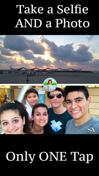 وفي مثل هذه الأجواء يقوم تطبيق Selfie Vista المجاني بدمج صورة الكاميرا الأمامية مع صورة الكاميرا الخلفية والتقاط صورة مزدوجة في نفس الوقت.